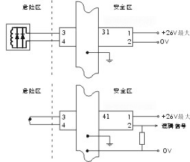 电磁阀、报警器、发光二极管(LED)等小功率设备或无源开关选用HD-WP6137-31-QEX或HD-WP6137-41-QEX安全栅。