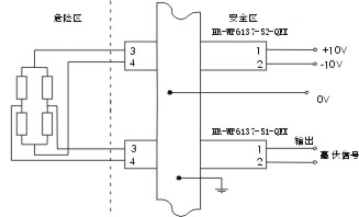 应变电桥被广泛应用于各种称重系统中,当于齐纳栅组成本安系统时,一般要选用两只或两只以上齐纳式安全栅。选用HR-WP6137-51-QEX做信号接收,用HR-WP6137-52-QEX做供电。