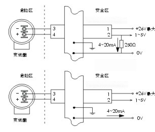 变送器与安全栅配接时,变送器供电电压波动较小的情况下,选用HD-WP6133-31-QEX或HD-WP6133-32-QEX型