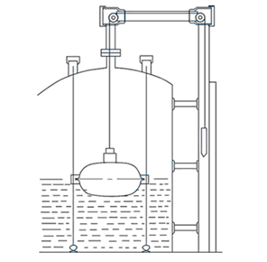液位计是根据力平衡原理设计的。当液位处于某一高度时浮标重量为W,重锤针重量为W1,浮标浸在液本中所受到的浮力为F,系统摩擦为(在平衡状态下:W-F-W1-f=0)
