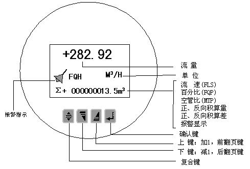电磁流量计圆表键盘定义