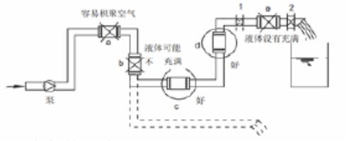 通常是指电磁流量计传感器安装位置不正确引起的故障,如下图所示将流量传感器安装在易积聚气体的管网高点a流量传感器后无背压,液体径直排入大气,形成其测量管内非满管e:装在自上向下流的垂直管道b,可能出现排空。应将传感器的位置安装到c或者d的位置,另外安装点必须满足前直管段至少为5D,后直管段至少为3D(D为管道直径)