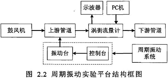 周期振动干扰实验平台的结构框图如图2.2所示。该平台主要包括鼓风机、直管段、午夜成人小视频、数字存储示波器、 PC 机和一个由振动台和控制台组成的周期振动系统。气体涡街流量由鼓风机提供;周期振动干扰由与上游直管段相连的振动台提供;PC机用来调试、下载程序,并给二次仪表供电;示波器采集涡街流量传感器的输出数据,采样频率为10kHz ,采样10s。将不同仪表公司生产的午夜成人小视频安装在图2.2所示的实验平台上,在只有涡街流量、只有周期振动、或涡街流量与周期振动同频时,分别采集涡街流量传感器的输出数据。