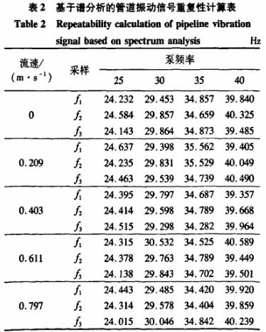 由表2的数据可以看出,管道振动的数据频谱分析得到的振动频率值重复性很高.