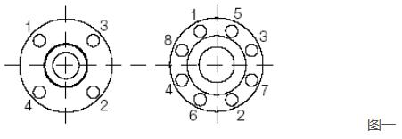 安装螺栓应按照通常的方式平均紧固,不可在电磁流量计某一侧过度紧固.午夜免费福利建议螺栓在紧固之前添加润滑油,并交叉紧固,如上图一所示. 在第一轮紧固过程中,螺栓拧紧50%,在第二轮中提高至80%,最后使用最大扭矩紧固.不应超过最大扭矩见表一,表二