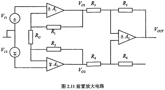 令运算放大器A1、A2、A3的输入失调电压分别为VI01、VI02、VI03,A1A2相互失调电压为VI0,失调电流为VI0;其中VI0=VI01-VI02,这样简化得到图2.12。