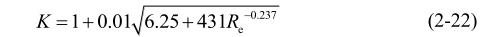 由式(2-17)和式(2-18)可以得到湍流状态下的流量修正系数K为