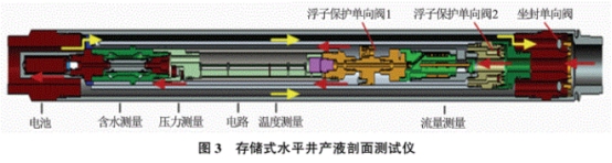 实验结果表明,当井简处于水平状态甚至负角度状态下,尽管流体的型态为层流或逆向流,但对浮子流量计和含水率的测试结果影响较小,最大误差仅4%。分析认为这是由于浮子位置变化只与进入锥形管空间流体流量有关,基本克服了油、水的分层流动使涡轮流量计响应变得复杂的问题。当流体经过电容+阻抗式持水率仪时,由于在圆周上配置多.个持水率传感器,能够很好地解决常规仪器只能中心采样不能探测到的全截面流体的问题,可以清楚地分辨出油和水。