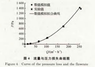 图4为流量与压力损失之间的关系曲线,图中实验值是在工况条件下使用音速喷嘴法气体流量标准装置测得.