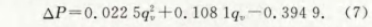 根据图4中压力损失随流量的变化趋势,可以将流量与压力损失之间的关系拟合曲线为二次多项式,其表达式为