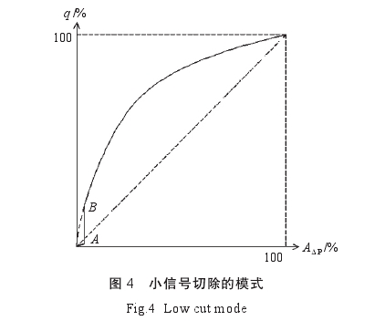 在差压式流量计中,小信号切除的作用更加突出,因为开平方运算的关系,使得流量在零点附近,运算模块具有非常大的增益。例如差压有+0.04%FS的漂移,开平方之后就有2%FS的输出。所以小流量信号切除点一般定得比较高。横河公司的EJA110E型差压变送器出厂设置定在满量程差压的1%,对应满量程流量的10%。这样--来使流量显示的死区变得更大。如果小信号切除模式指定为“切到0”,则流量小于10.0%FS的所有各点,仪表都显示零。以至在调零操作时,外部调零螺钉顺时针或反时针旋转很多圈,输出都无动于衷。“切到线性”的功能,从而使死区不死,即流量小于指定值后,输出与输人之间呈线性关系,甚至在差压.为负值时,仍有对应的变化值,从而使调整更方便。这样信号切除的关系如图4所示。