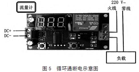 技术人员采用无限循环定时开关模块,对更换后更大容量的电容进行连续通断电实验。根据对流量计开机时间的计量发现,完全进入开机状态需要20s,因此设置通电时间为20 s。循环通断电示意图如图5所示。