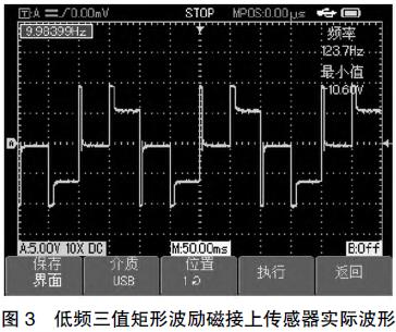 由低通滤波器进行衰减并滤除部分杂波后的信号SIGN(图7)经模拟开关进入精密ADC进行AD转换输入单片机。可以发现,此时的信号与励磁波形已经十分相似,信号高低处已经十分平滑,可以进行AD转换。