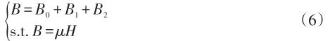 式中,B0为励磁线圈产生的磁感应强度。将B代入式(1),则流速可以进一步准确确定。在已有的电磁流量计磁场计算时,假设B1是不变的,但是这不符合疏浚管道的实际情况。