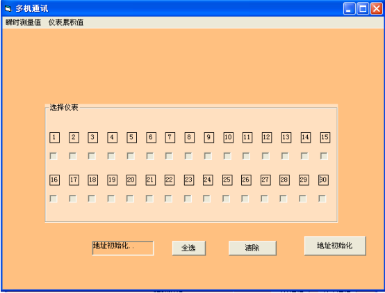 6、软件自动搜索通讯地址,点击上面的菜单显示多台电磁流量计对应的数据,对比微机上的数据应该与电磁流量计所显示的数据相同。