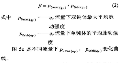 双钝体对涡街的强度有加强的作用。在不同的流量下双钝体对涡街的加强程度是不一样的如图6a所示。从qv---β可以知道在不同流量下涡街平均强度最大的放大倍数是不相同的,β在qv=130m3/h时达到最大。