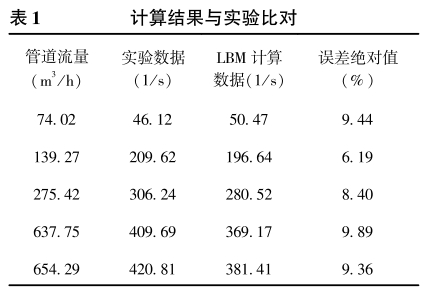 表1是本文数值仿真得到的涡街漩涡脱落频率与检定装置实测数据的对比,发现计算结果与实验