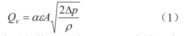 式中:ΔP为全压与静压之差,Pa;Qv为被测流体的体积流量,m3/s;α为流量系数;ε为流束膨胀系数,不可压缩性流体ε=1,可压缩性流体ε<1;A为管道内截面面积,m2;ρ为被测流体密度,kg/m3。