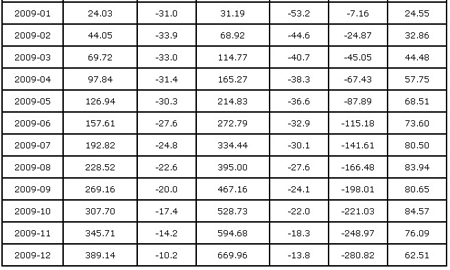 2009 年1~12 月,我国仪器仪表累计出口额为389.14 亿美元,同比增长-10.2%,增速比上年同期下降了27.2 个百分点;累计进口额为669.96