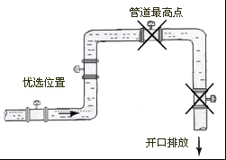 ⑷流量计安装位置介质不满管时,可采取抬高流量半后端管路的方法,使其满管,严禁在管道最高点和出水口安装流量计。(见图)